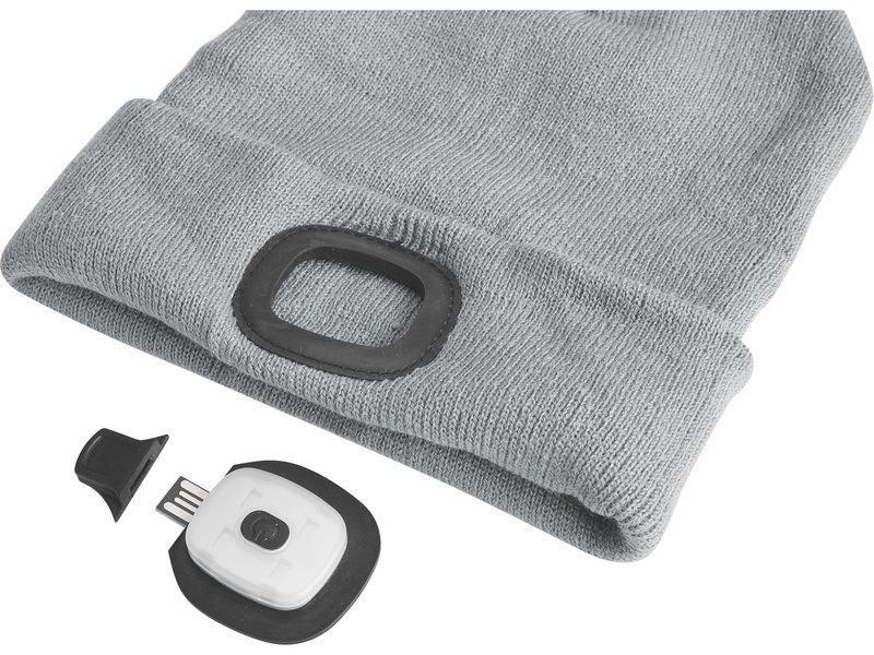 čepice s čelovkou 4x45lm, USB nabíjení, šedá, univerzální velikost